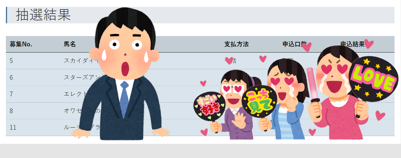 一口馬主は一般的には金融商品なわけですが、お金は二の次に出資馬たちの頑張りを応援し、無事に競争生活を終えれることを祈っていきたいと思います。